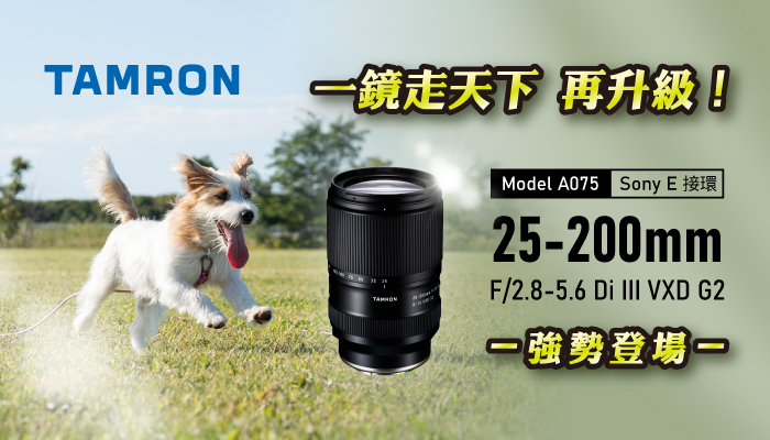 多領域光學產品領導品牌 TAMRON(騰龍股份有限公司)(總部:日本埼玉市、社長:櫻庭將吾)宣布將於 2025 年 11 月 20 日 推出25-200mm F/2.8-5.6 Di III VXD G2(Model A075),適用 Sony E 接環全片幅無反光鏡相機的全新一體式變焦鏡頭。